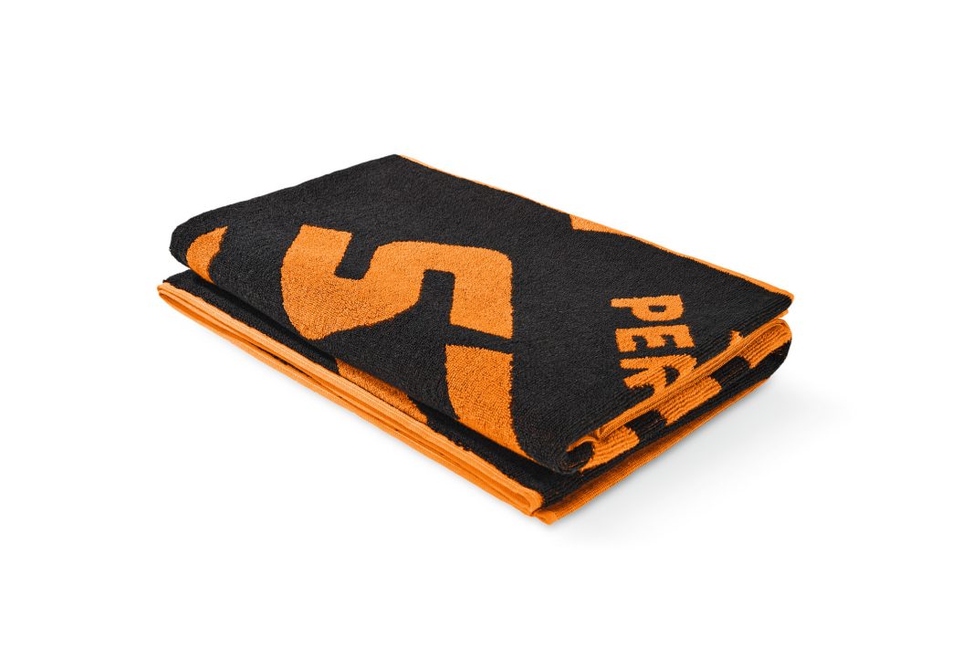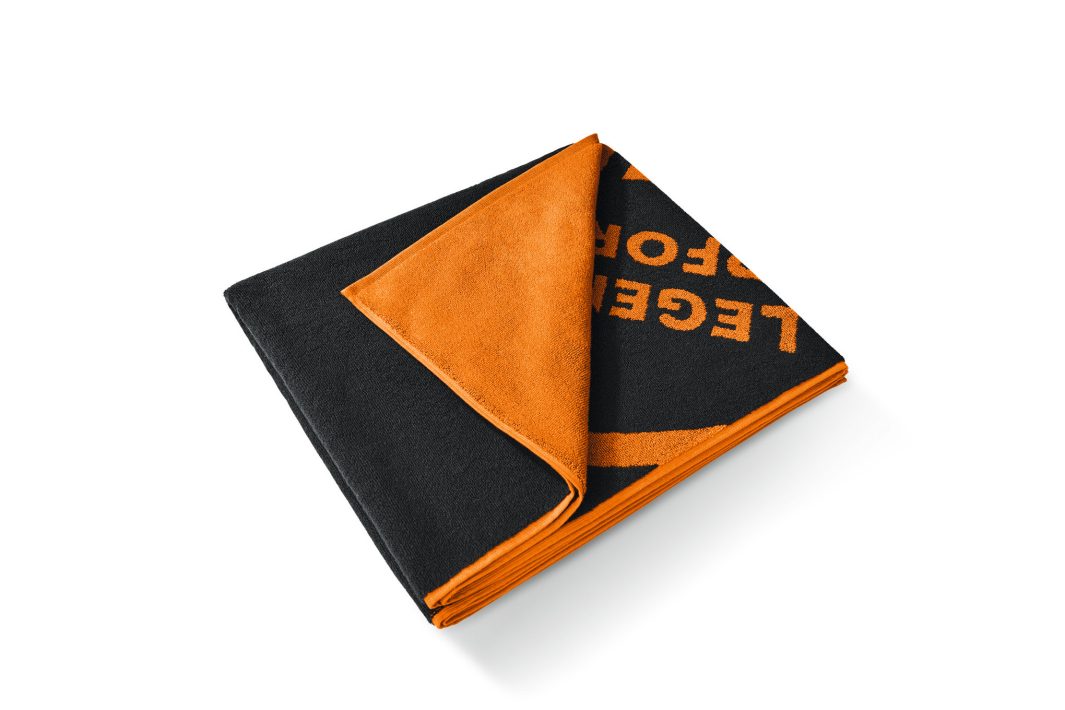 It´s Beach Time ! Das riesige Badetuch aus reiner Baumwolle mit Frottee-Griff ist der perfekte Begleiter für Strand, Dampfbad und viele andere Aktivitäten. Das coole »LEGENDARY PERFORMANCE«-Design des Frotteehandtuchs macht es zu einem echten Unikat. Farbe Schwarz und Orange, 100 % Baumwolle. Maße: 180 x 80 cm